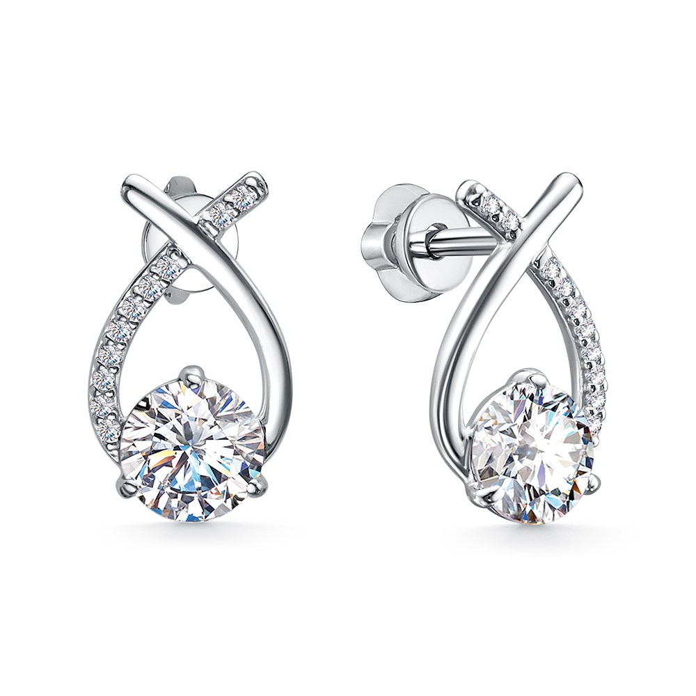 12-2708 Серьги с фианитом родированные серебро 925*