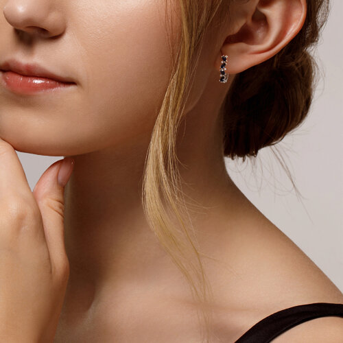 2021133-3 - Серьги из белого золота с бриллиантами и сапфирами