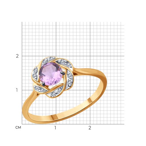 51-310-01746-4 - Кольцо золотое пробы 585 с аметистом