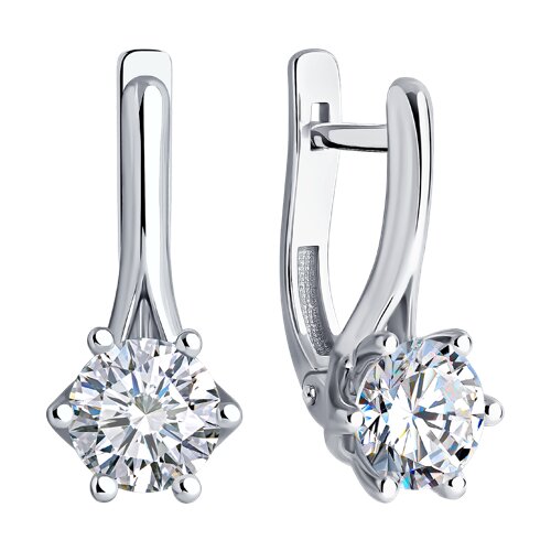 52-220-02401-1 - Серьги из белого золота с выращенными бриллиантами и рубинами