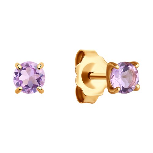 727567 - Серьги пусеты золотые пробы 585 с аметистом
