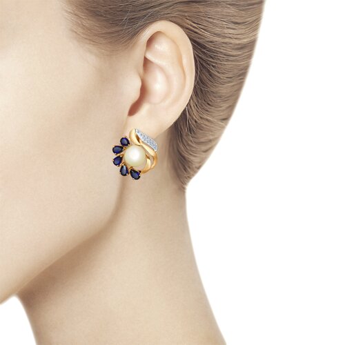 792042 - Серьги золотые пробы 585 с жемчугом