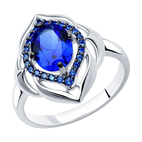 88010035 - Кольцо из серебра с корундом сапфировым (синт.) и синими фианитами