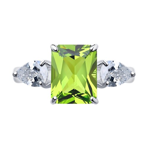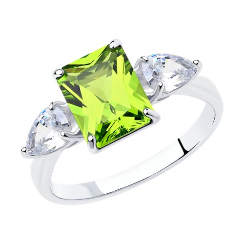 92011286 - Кольцо из серебра с зелёным ситаллом и фианитами
