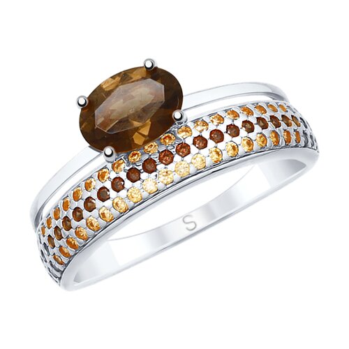 92011616 - Кольцо из серебра с раухтопазом и фианитами