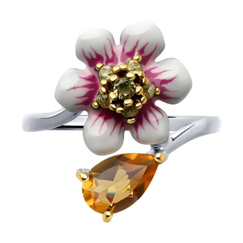 92014428 - Кольцо из золочёного серебра с цитрином, эмалью и фианитами