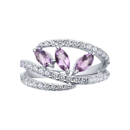 92014531 - Кольцо из серебра с аметистами и фианитами