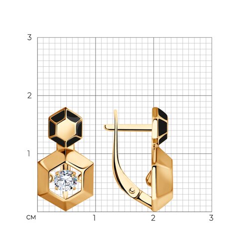 93-120-01854-1 - Серьги из золочёного серебра с фианитами и эмалью