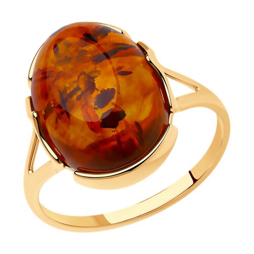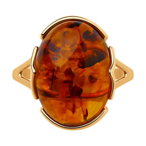 93010518 - Кольцо из золочёного серебра с коричневым янтарём