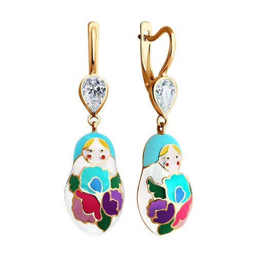 93020450 - Серьги длинные из золочёного серебра с эмалью и фианитами