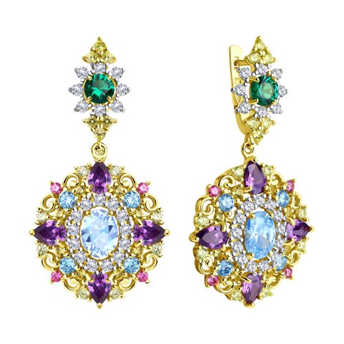 93020937 - Серьги из золочёного серебра с фианитами