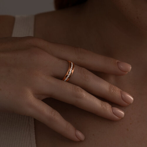 93110018 - Обручальное кольцо из золочёного серебра с фианитами