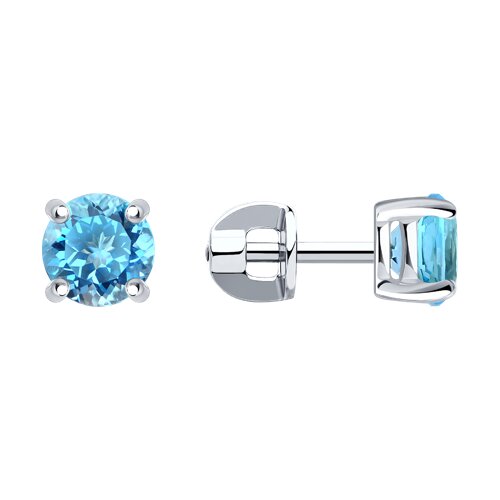 94020532 - Серьги-пусеты из серебра с голубыми фианитами
