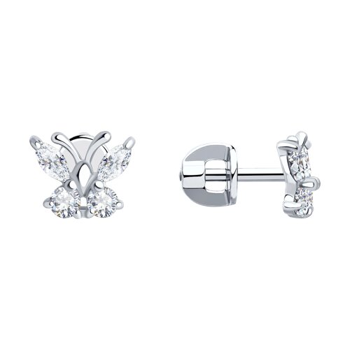 94020535 - Серьги-пусеты из серебра с белыми фианитами