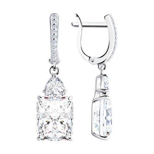 94022206 - Серьги длинные из серебра с фианитами