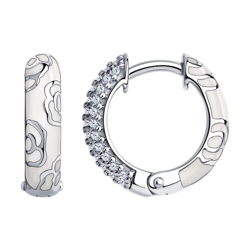 94024821 - Серьги из серебра с фианитами и эмалью