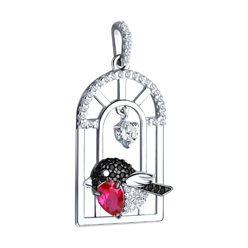 94031985 - Подвеска из серебра с бесцветными, красным и чёрными фианитами