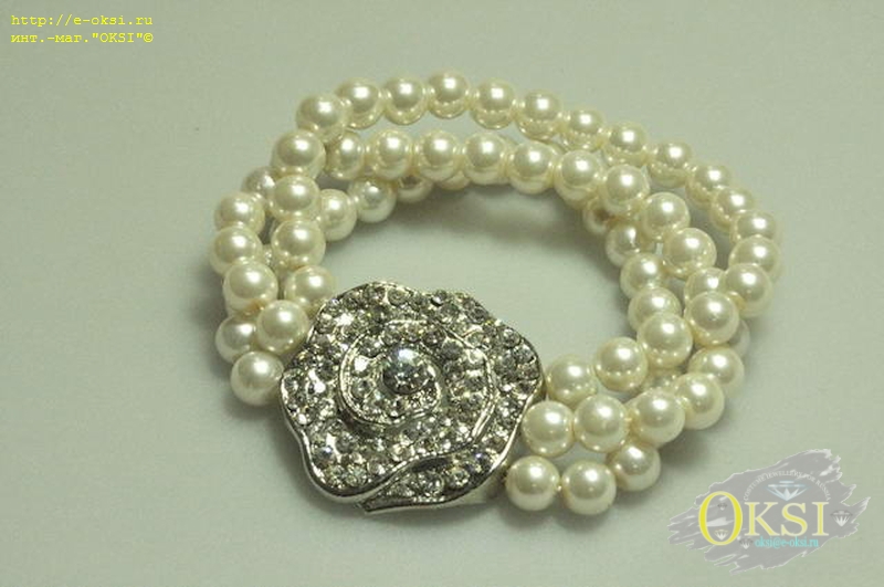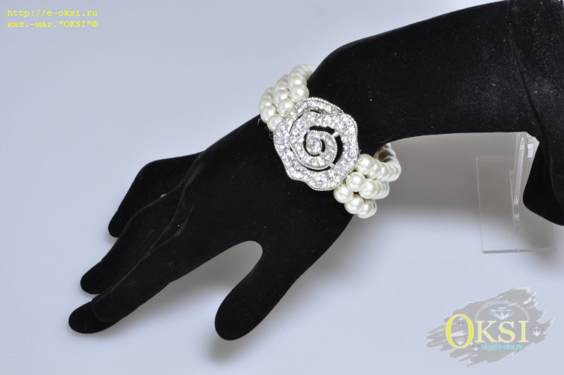 Роскошный жемчужный браслет с красивым декором - инкрустированная сверкающими кристаллами серебристая роза. Искусственный жемчуг цвет '' Айвори ''. Безразмерный. Высота браслета 4 см. Цвет ''Айвори'' означает «слоновая кость». Этот изысканный и универсальный цвет сочетается практически с любым оттенком одежды и аксессуаров . К браслету идеально подходит комплект 30010466.