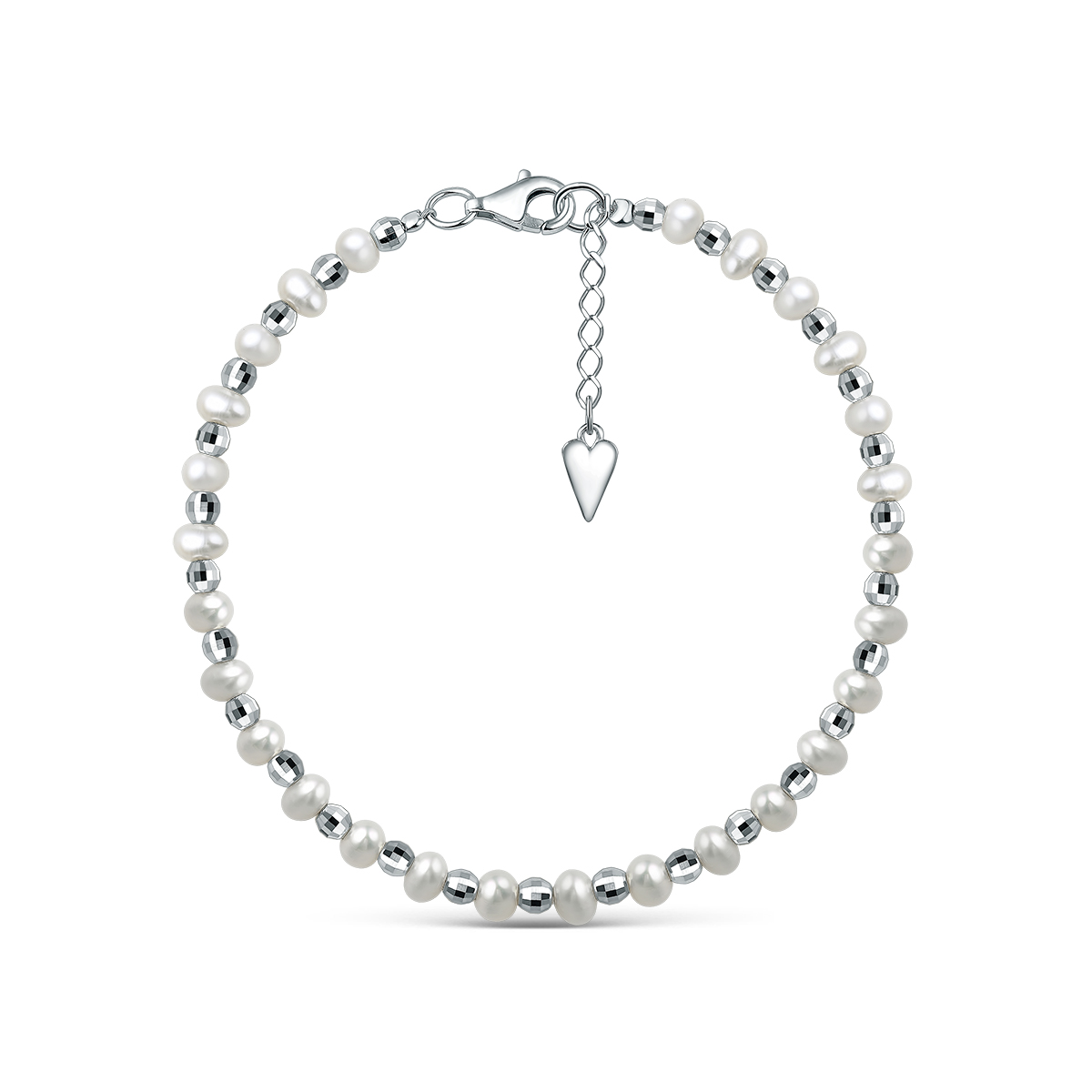 Браслет из серебра с пресноводным культивированным жемчугом родированный - 18 см 251-10-292-18р