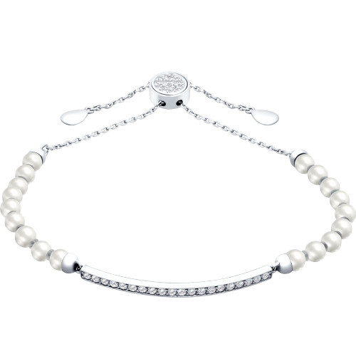 Браслет из серебра с синтетическим жемчугом и фианитами