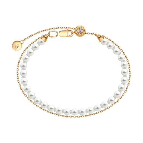 Браслет из серебра с синтетическим жемчугом и фианитами