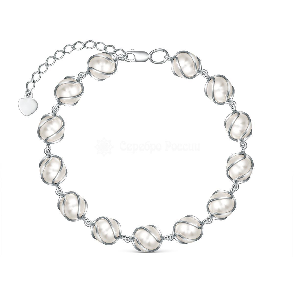 Браслет из серебра с жемчугом родированный 925 пробы 5201