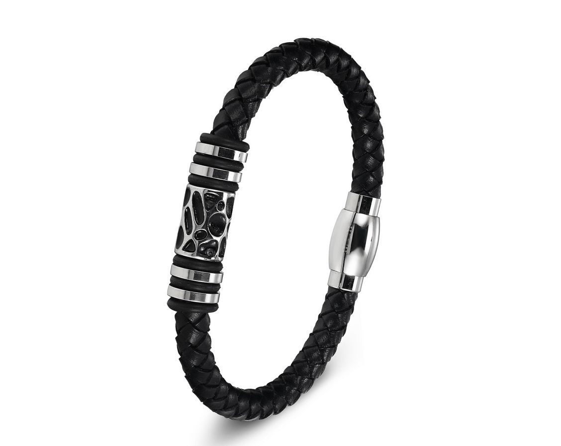 Браслет из кожи и стали, ALB27