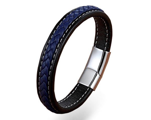 Браслет из кожи и стали, ALB57-1