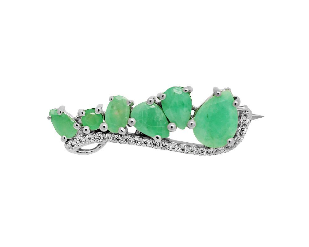 Брошь, арт.644851 Серебро Серебро 925, 3,07 гр., изумруд берилл