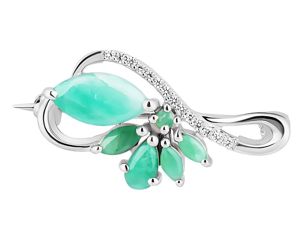 Брошь, арт.658326 Серебро Серебро 925, 2,86 гр., изумруд берилл