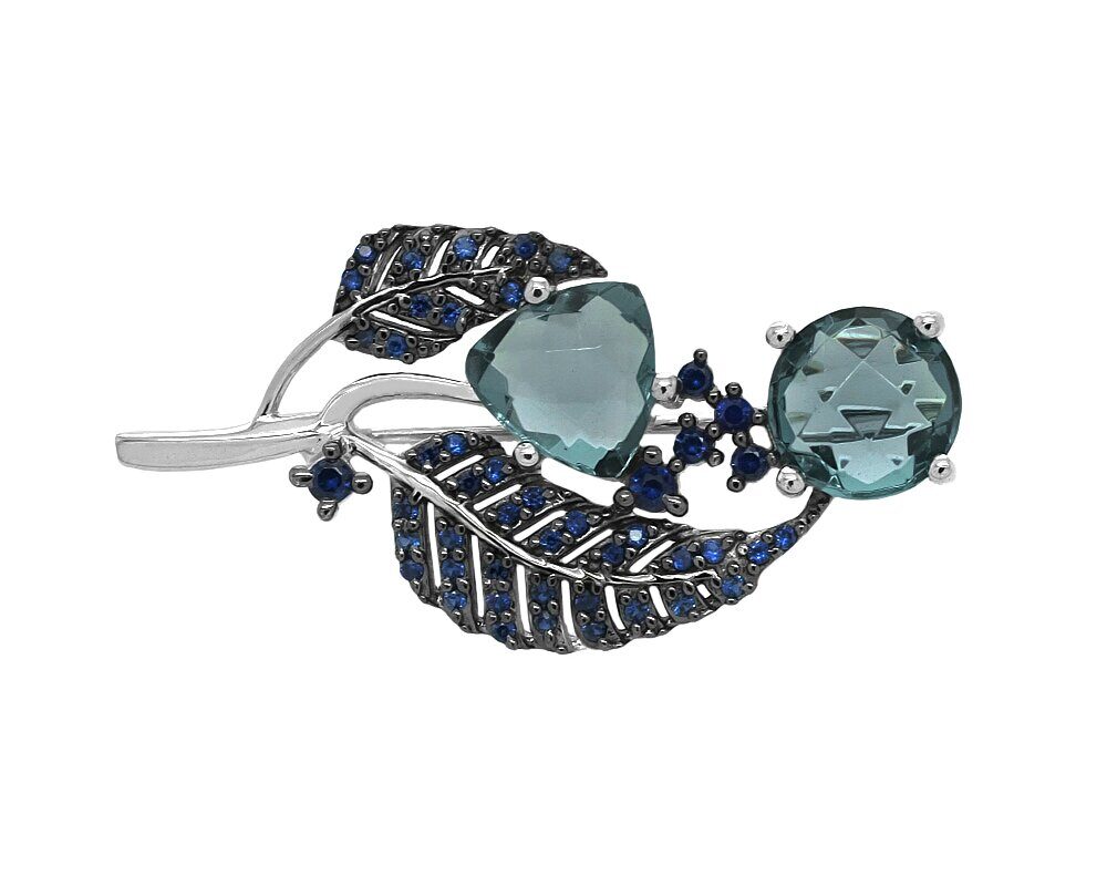 Брошь из серебра лондон топаз кварц, нанотопаз, Лист