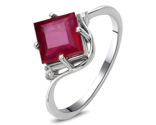 Кольцо, арт.658012 Серебро Серебро 925, р. 17, 2,1 гр., 1 рубин корунд квадрат 7 мм/2.57 ct