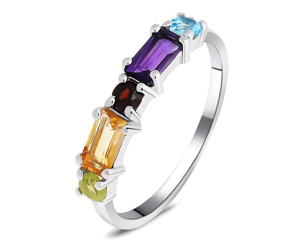 Кольцо, арт.657789 Серебро Серебро 925, р. 19, 1,87 гр., аметист , гранат , перидот , топаз
