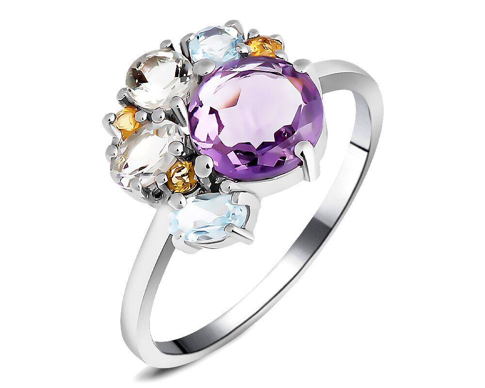 Кольцо, арт.657762 Серебро Серебро 925, р. 19.5, 2,81 гр., аметист , зеленый аметист , топаз , цитрин