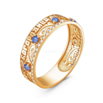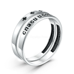 Кольцо двойное из чернёного серебра с фианитом и золочением - Спаси и сохрани 925 пробы 1-199члз200
