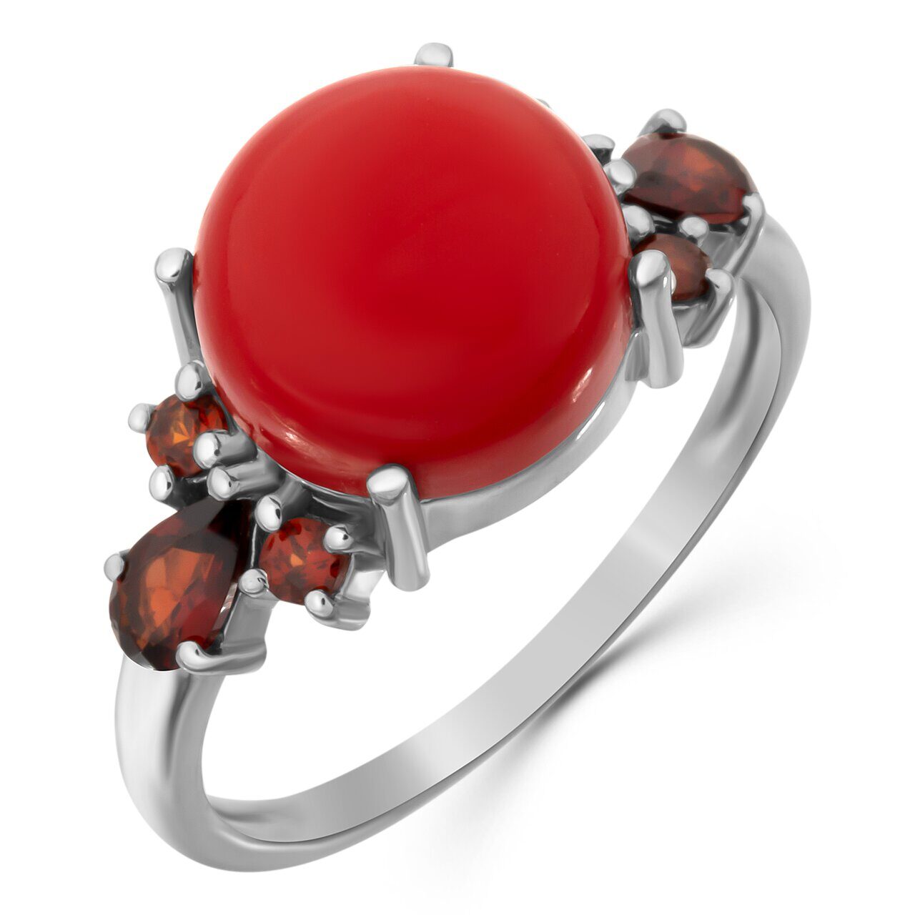 Кольцо, арт.653155 Серебро Серебро 925, р. 18.5, 3,04 гр., гранат , коралл пресс.