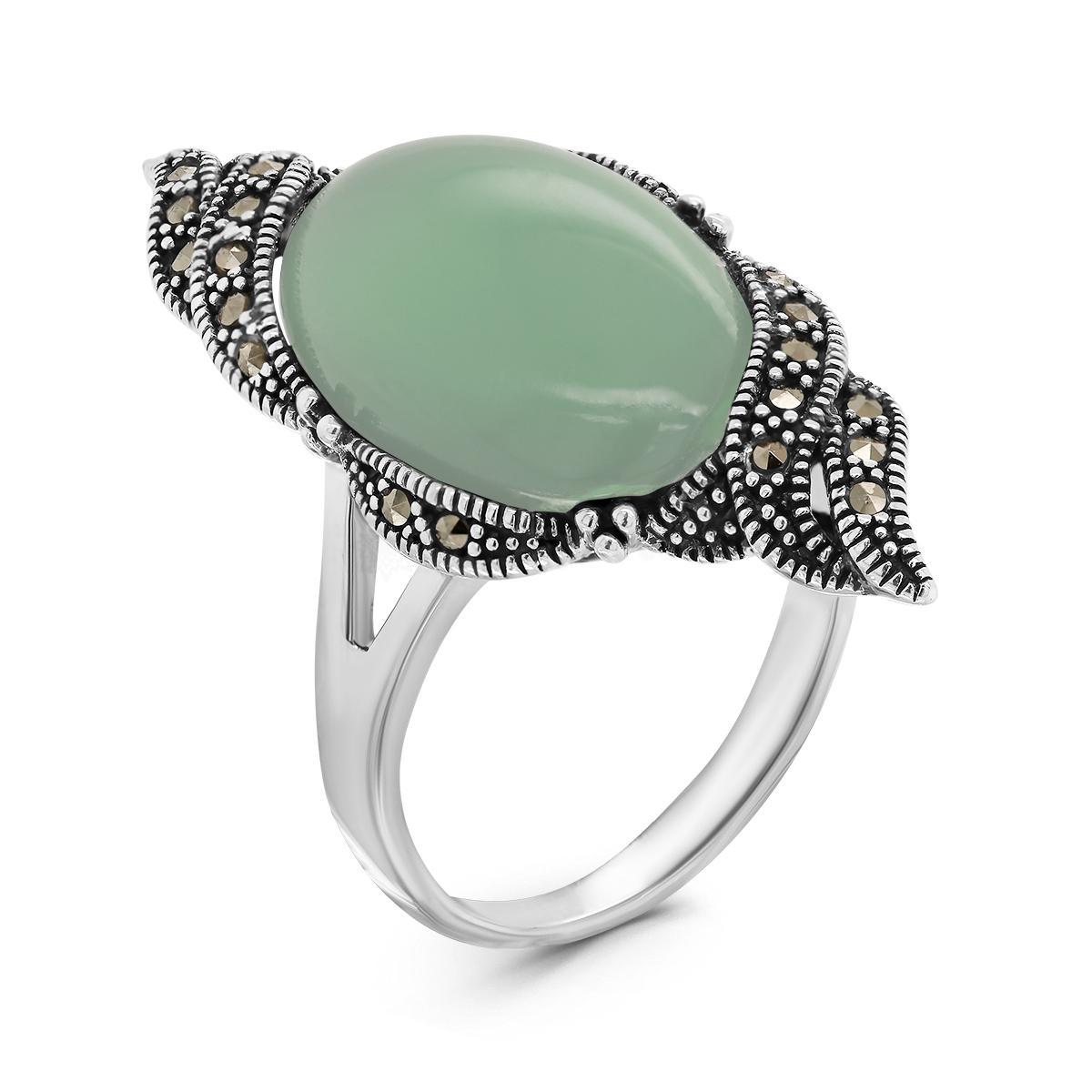 Кольцо из чернёного серебра с халцедоном и марказитами 925 пробы HR-1113гх