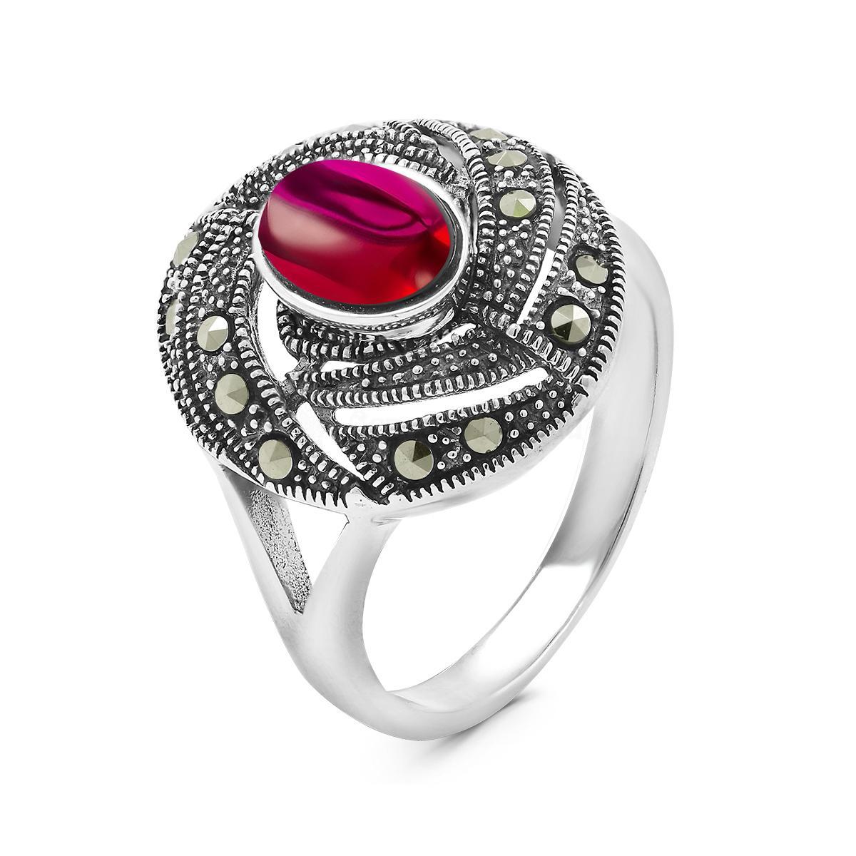 Кольцо из чернёного серебра с корундом рубиновым и марказитами 925 пробы HR-969о315