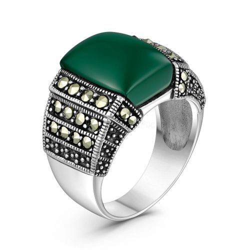 Кольцо из чернёного серебра с марказитами 925 пробы HR1649-MAC
