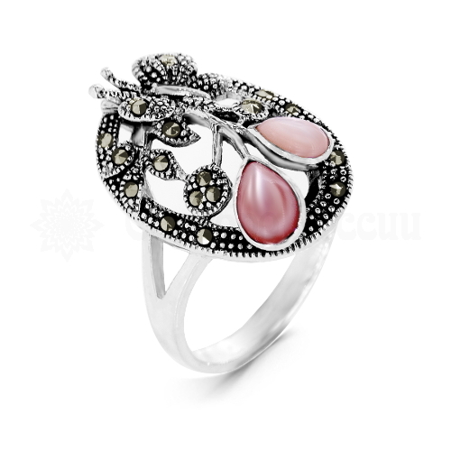 Кольцо из черненого серебра с марказитами и перламутром 925 пробы hr-1124