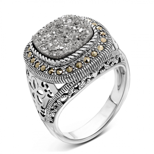 Кольцо из чернёного серебра с нат.друзой агата и марказитами 925 пробы MR00953о-1