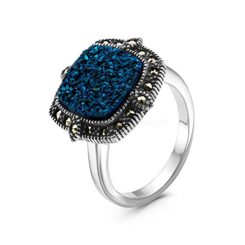Кольцо из чернёного серебра с нат.друзой агата и марказитами 925 пробы MR01612о-1