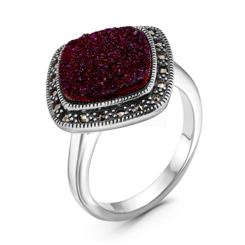 Кольцо из чернёного серебра с нат.друзой агата и марказитами 925 пробы MR01612о-3