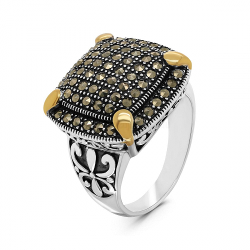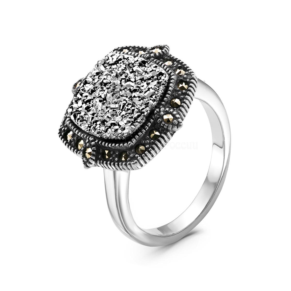 Кольцо из чернёного серебра с нат. друзой агата и марказитами 925 пробы MR01613о-1