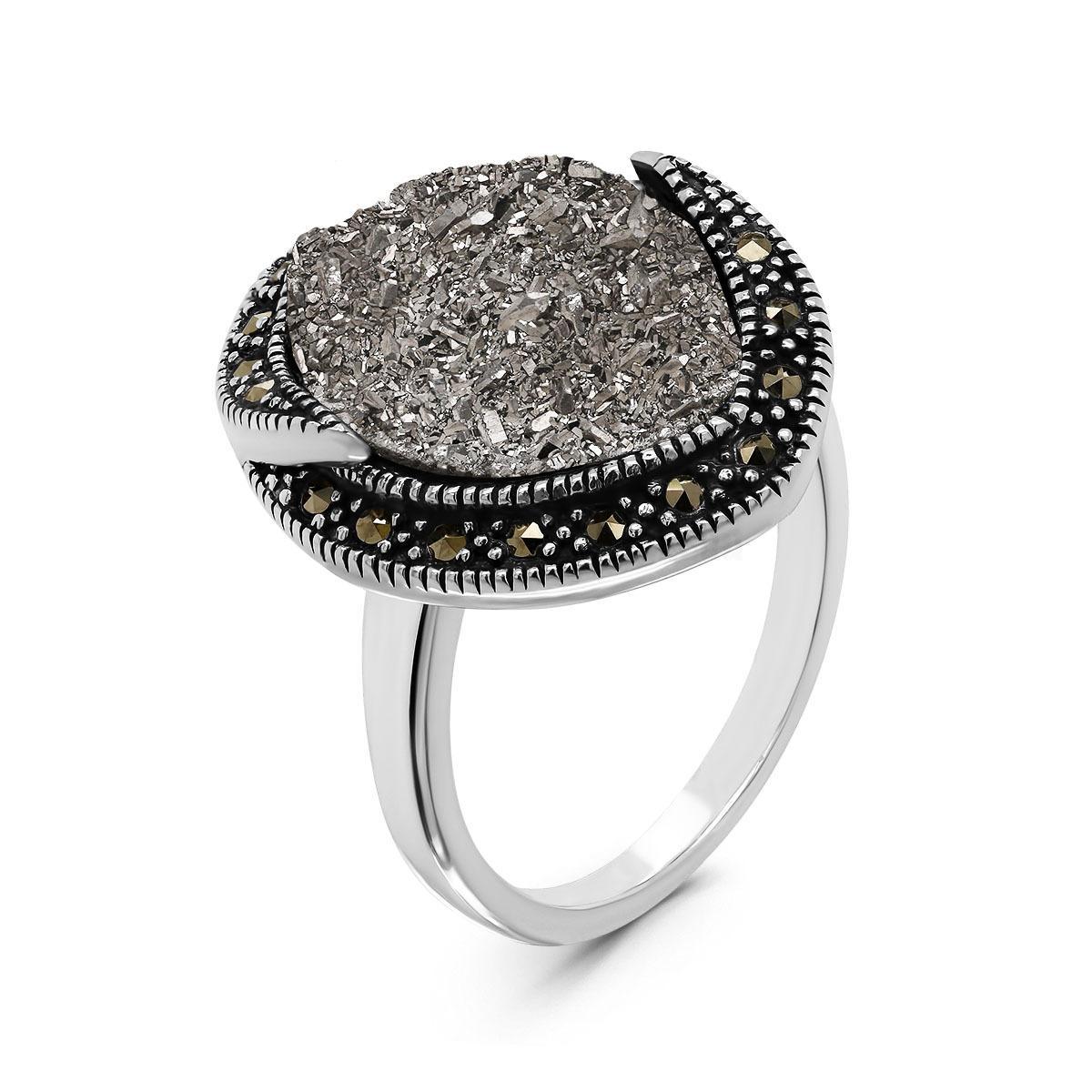 Кольцо из чернёного серебра с нат.друзой агата и марказитами 925 пробы MR01615о-1