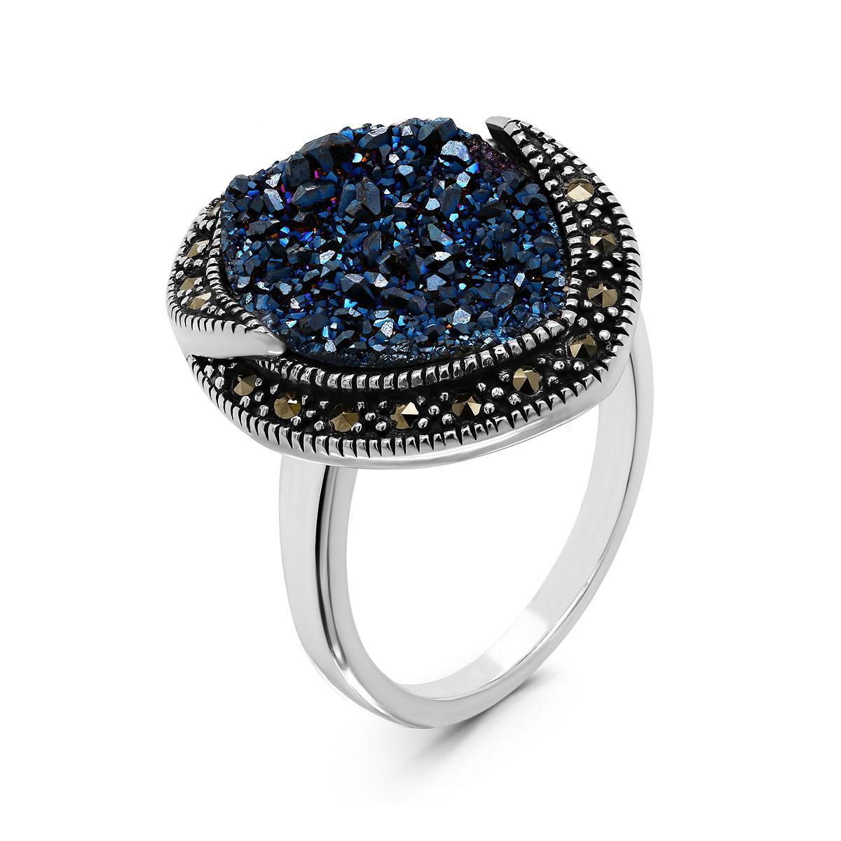 Кольцо из чернёного серебра с нат.друзой агата и марказитами 925 пробы MR01615о-2