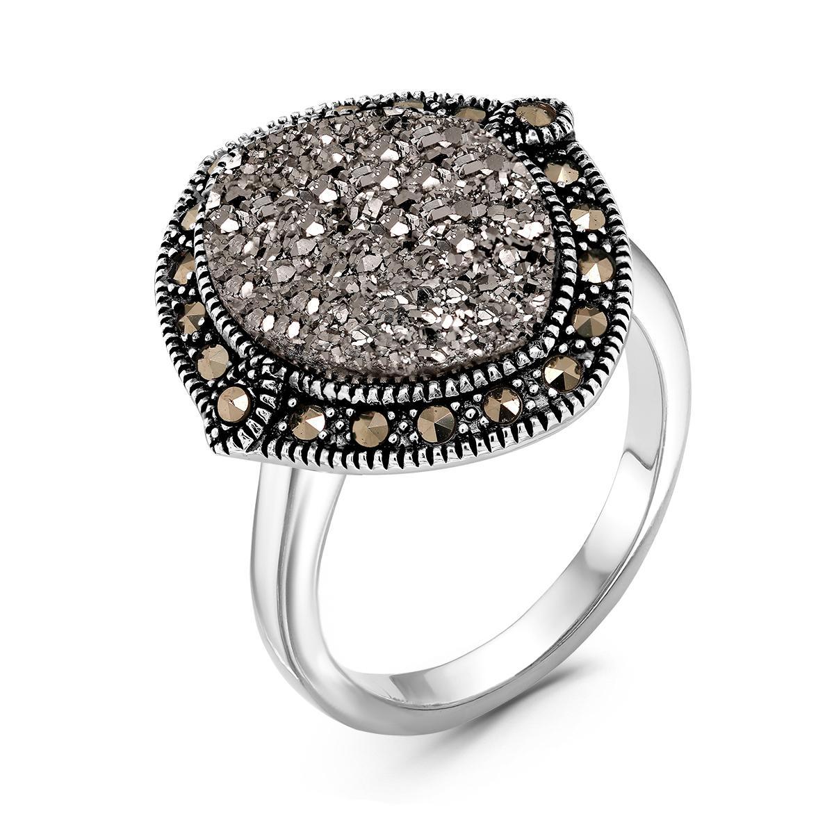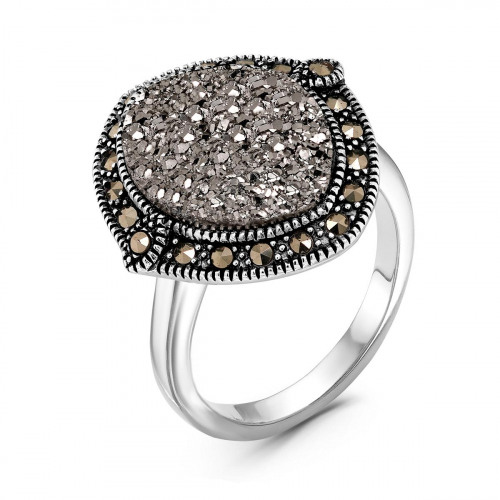 Кольцо из чернёного серебра с нат.друзой агата и марказитами 925 пробы MR01616о-1