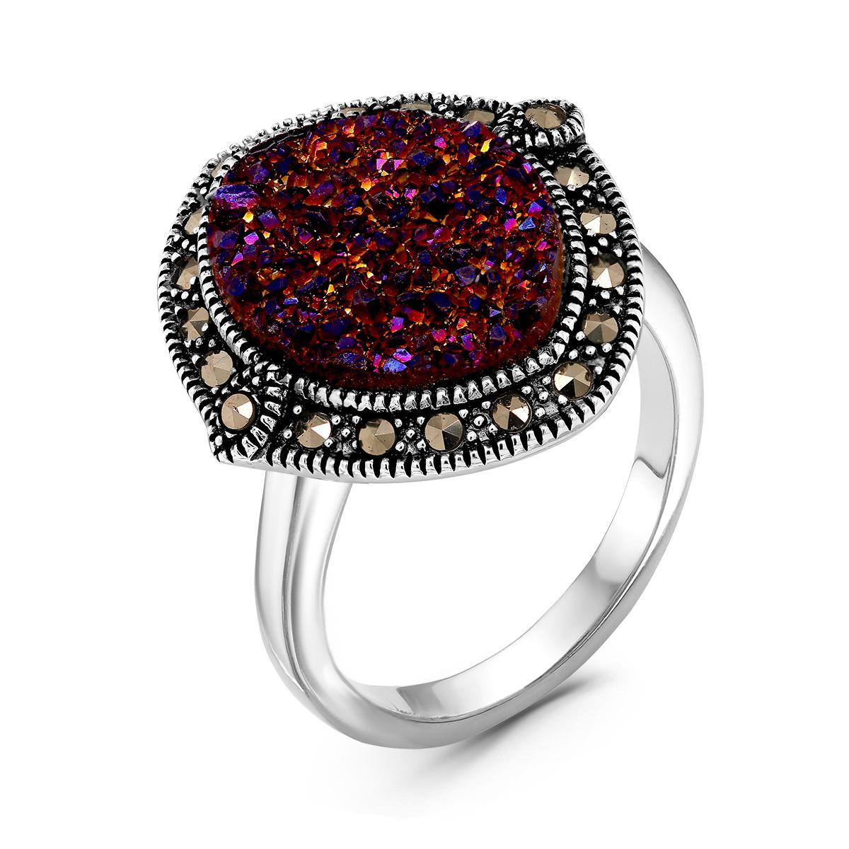 Кольцо из чернёного серебра с нат.друзой агата и марказитами 925 пробы MR01616о-3