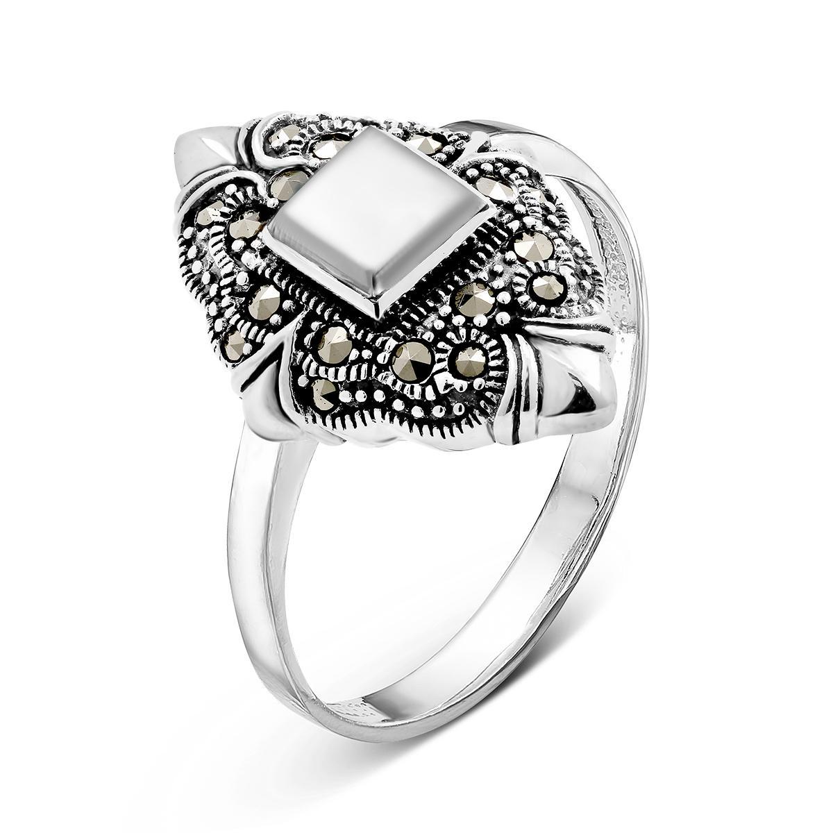 Кольцо из чернёного серебра с перламутром и марказитами 925 пробы HR-1224п
