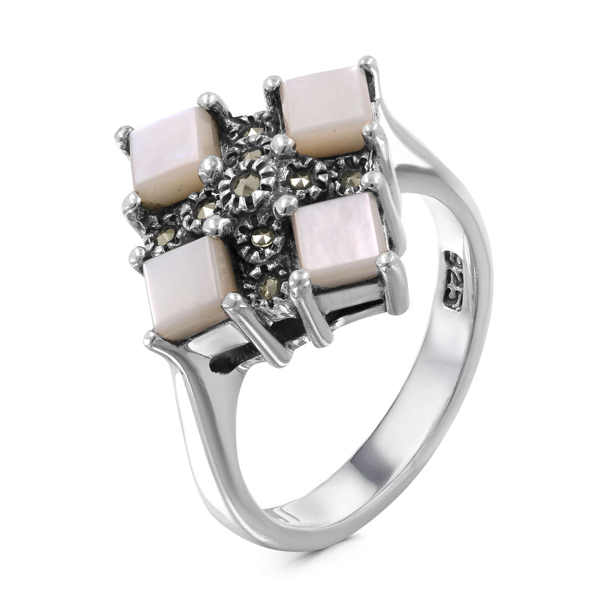 Кольцо из чернёного серебра с перламутром и марказитами 925 пробы HR-404п